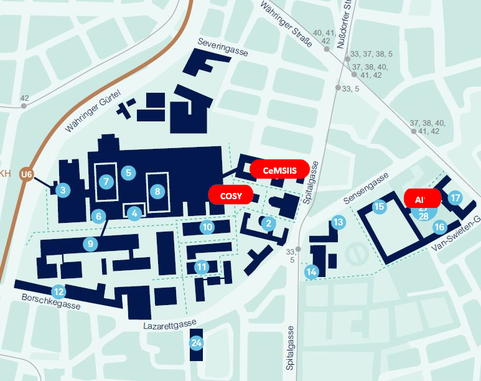 - Institut für Wissenschaft Komplexer Systeme (COSY): Spitalgasse 23, BT86, 1090 Wien
